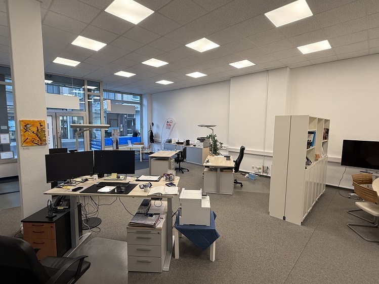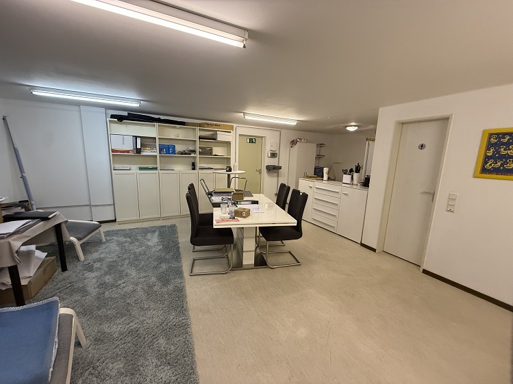 Im großen und freundlich hellen Verkaufs-/Büroraum ist die Präsentation von Waren ebenso attraktiv gestaltbar, wie auch eine angenehme Arbeits- und Beratungsatmosphäre mit Ihrem Mitarbeiter-Team und Kundenkreis. Der Boden wurde zudem mit grauem Teppichboden belegt und dämpft somit Geräusche für ein ruhiges, angenehmes Arbeitsambiente.