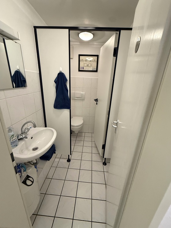 Zudem sind hier die beiden Toiletten untergebracht, die sich in sehr gepflegtem, zeitlosem Schwarz-Weiss-Design präsentieren.