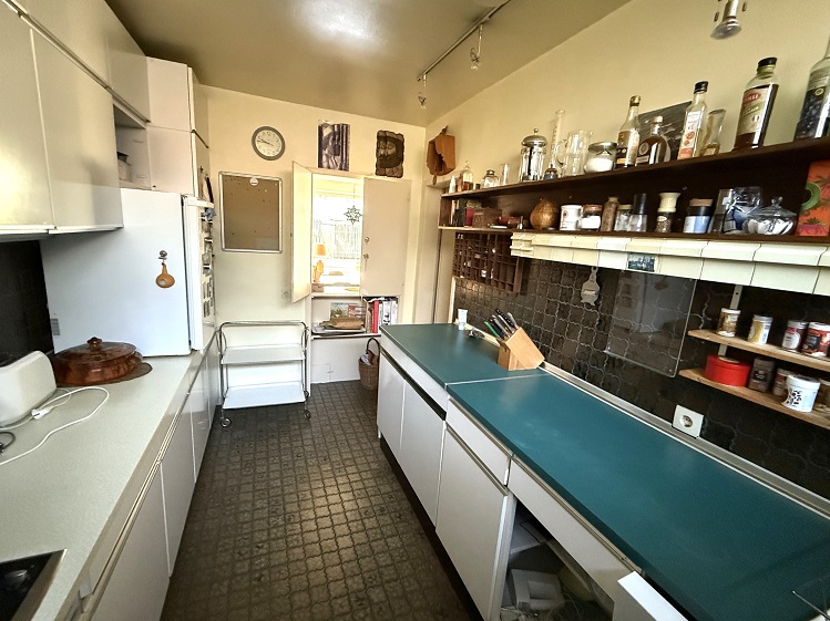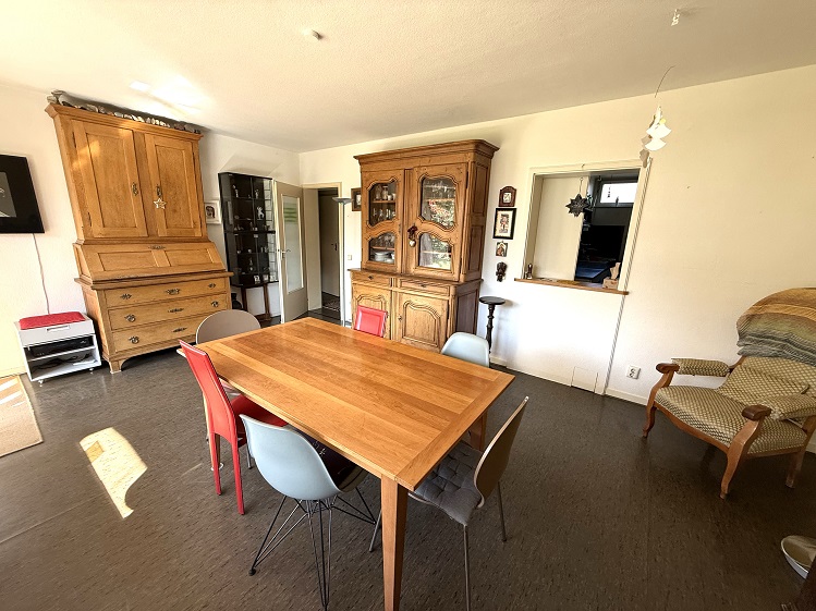 Aufgrund der Hanglage befindet sich der Wohn-/Esszimmer sowie die Küche im Gartengeschoss, mit direktem Zugang auf die Terrasse und in den Garten.